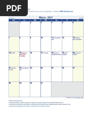 calendario marzo 2021 mexico 2021