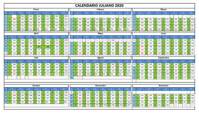 Calendario Juliano 2020 Para Imprimir