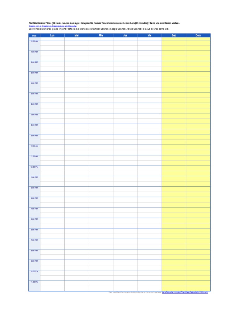 - Plantilla horario semanal 24 horas empezando el lunes.