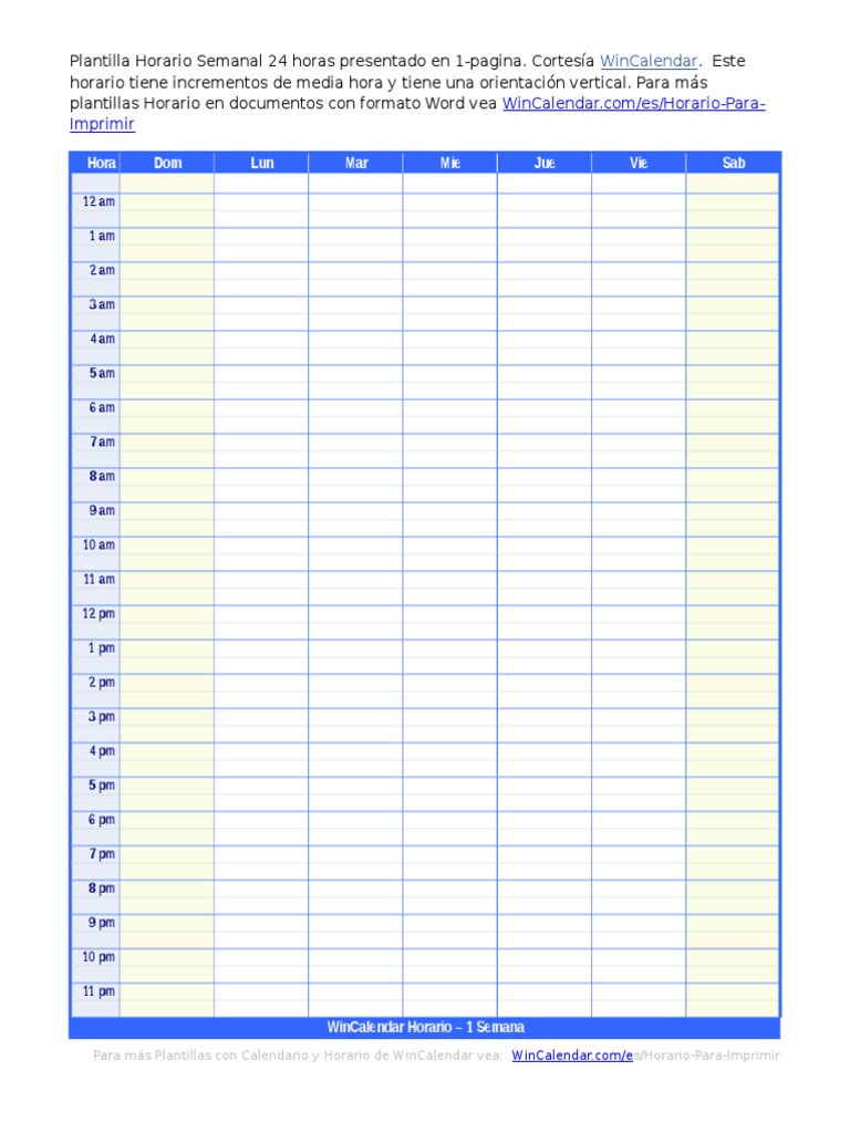 Este horário tem incrementos de meia hora e tem uma orientação vertical. Para más plantillas horario en documentos con formato word vea. Para mais modelos de agenda no word formato documentos consulte.